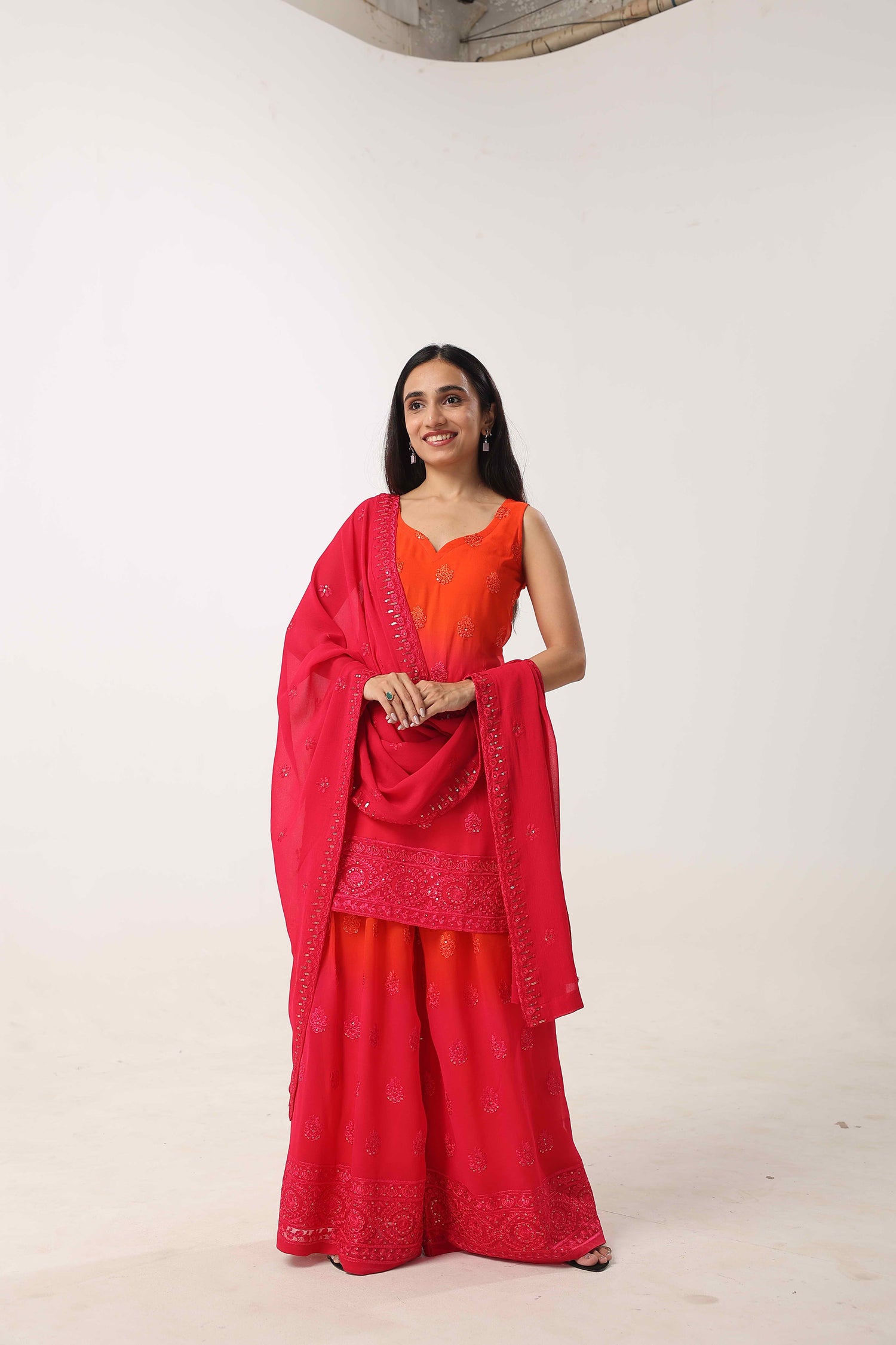 kesar Pink Aline embroidered hand work sleeve mul Chanderi dress