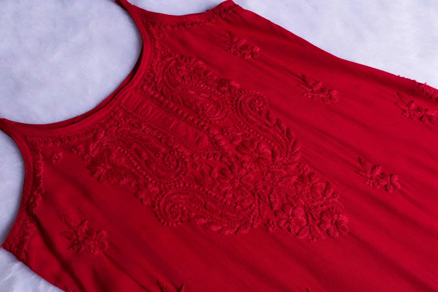 Falak Red Noodle Strap 3 Piece Kurta set