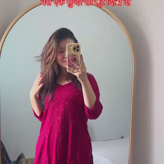 Gulistaan Maroon 2 piece Rayon Kurta Plazzo set