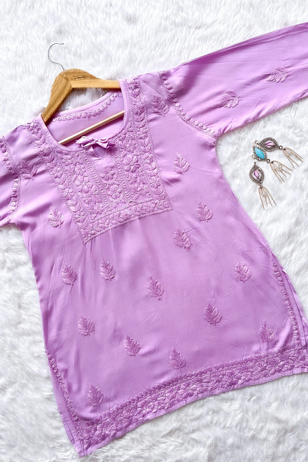 Safina Lilac Chikankari Rayon Short Kurti