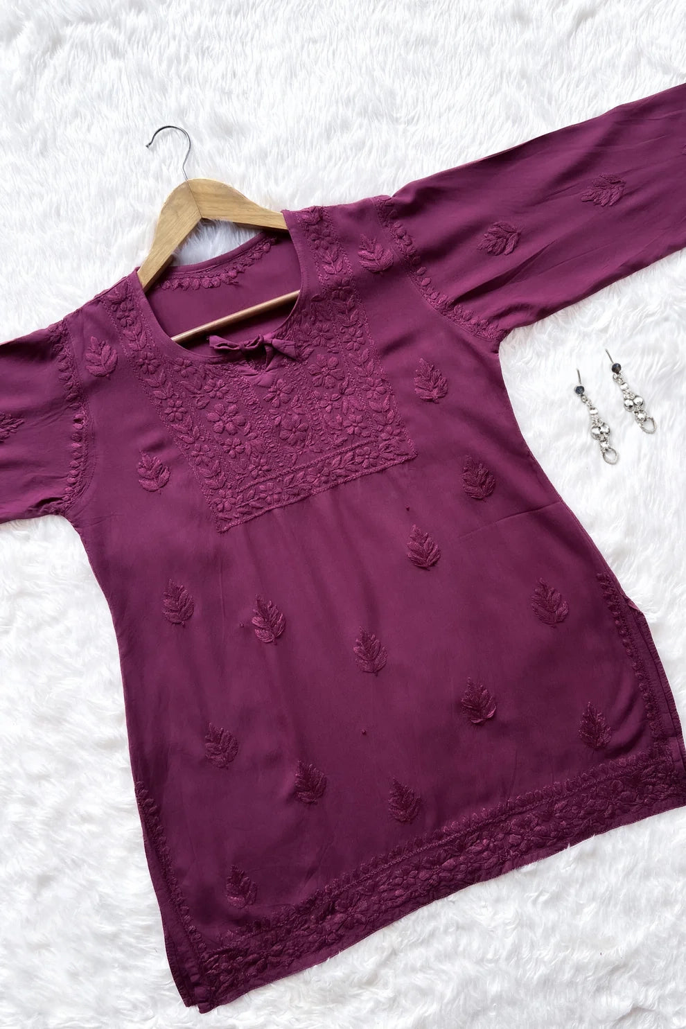 Safina Wine Chikankari Rayon Short Kurti