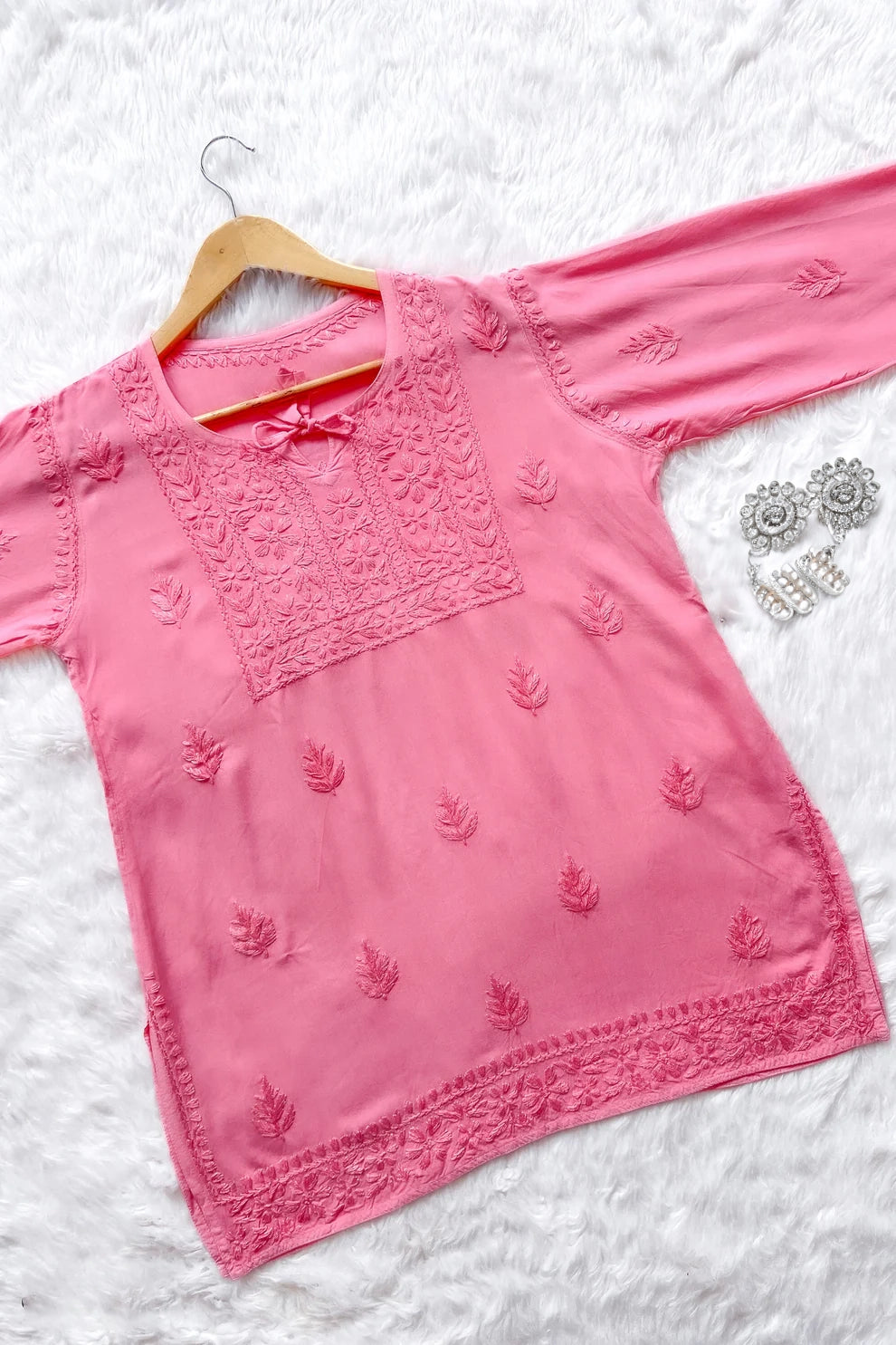 Safina Peachy Pink Chikankari Rayon Short Kurti