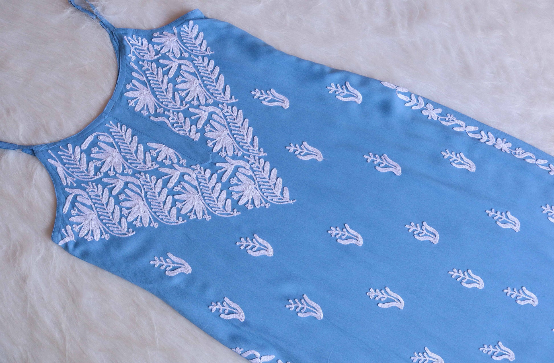 SUHANI Ice Blue Sleeveless Rayon Kurta Pant set